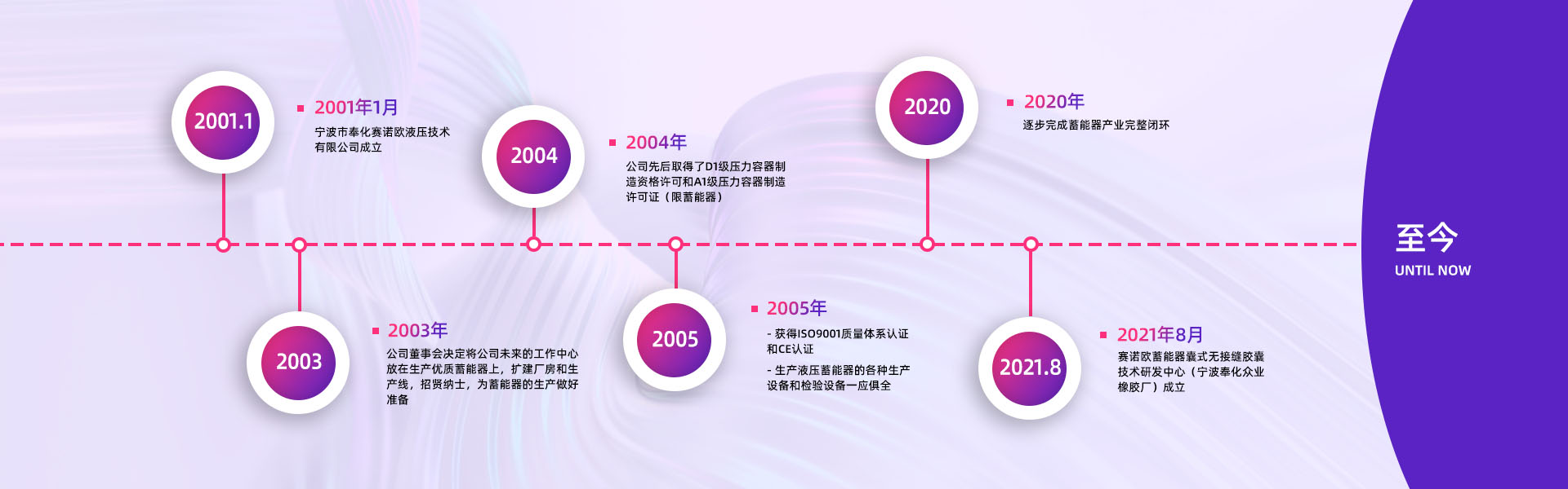 寧波市奉化賽諾歐液壓技術有限公司始建于2001年,是國家定點專業(yè)生產(chǎn)蓄能器、無縫高壓氣瓶的制造企業(yè),已有15年以上的生產(chǎn)歷史。公司具有A1級壓力容器制造許可證、iso9001國際質量體系認證及歐盟CE認證證書。